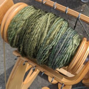 I’ve been working on two art batts today, created on my Brother Drum Carder.