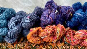 I have been spinning and dyeing wool for many years for my weaver friend, Marion. This weekend I completed another